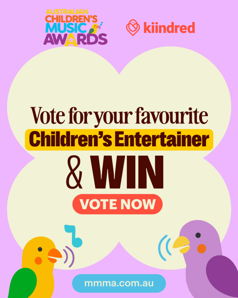 By casting your vote, you’re not just helping them shine, you’re giving the entire children’s music community a big cheer-on AND you could WIN a family pass to attend the Australian Children’s Music Awards, thanks to our sponsor Kiindred & Kiin Creator!